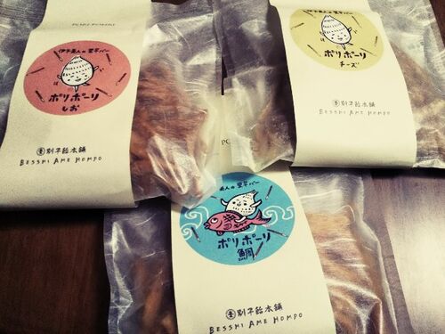 愛媛県の別子飴本舗のポリポーリを購入です。愛媛県産の里芋を使ったこだわりのお菓子。 道後のおみやげ屋さん(テナントショップ?)で見つけました。 その店以外では見つけられなかったので、生産量も少ないのかな? さっそくいただきました! 愛媛県産里芋…